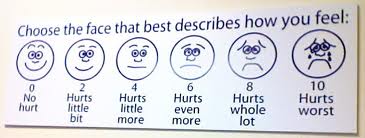 The medical profession has finally come up with a way for patients to convey the degree of pain they feel. Not completely accurate, mind you, but a far cry from former verbal descriptions. Everybody’s pain threshold is different. It’s a start.